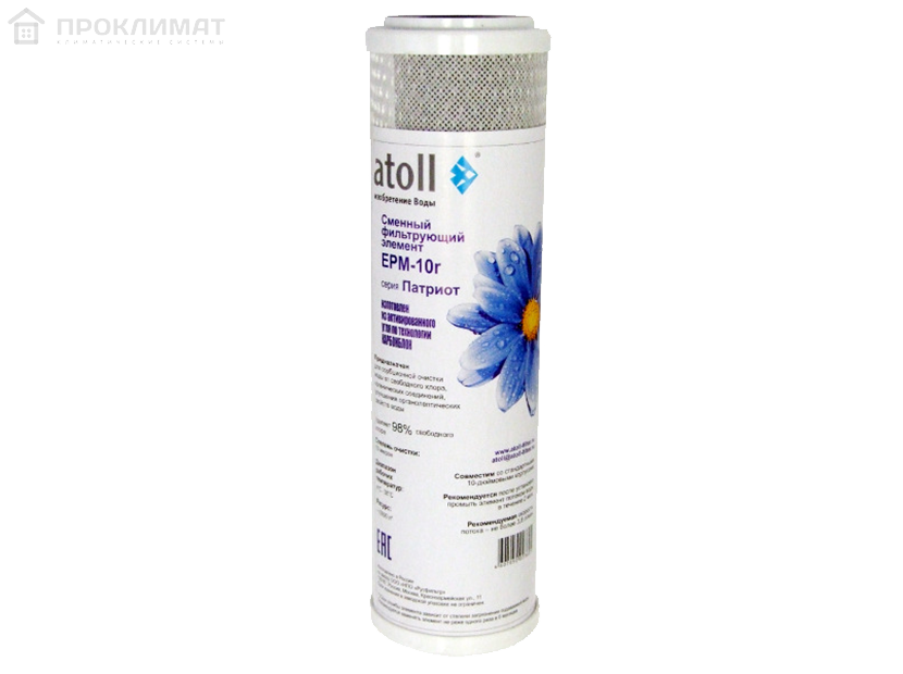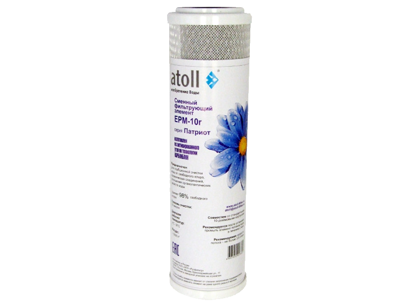 Сменный фильтрующий элемент Atoll EPM-10r из прессованного угля. Предназначен для очистки холодной воды, улучшает ее вкус и запах. Обеспечивает низкое сопротивление потоку и увеличенные показатели очистки от хлора.