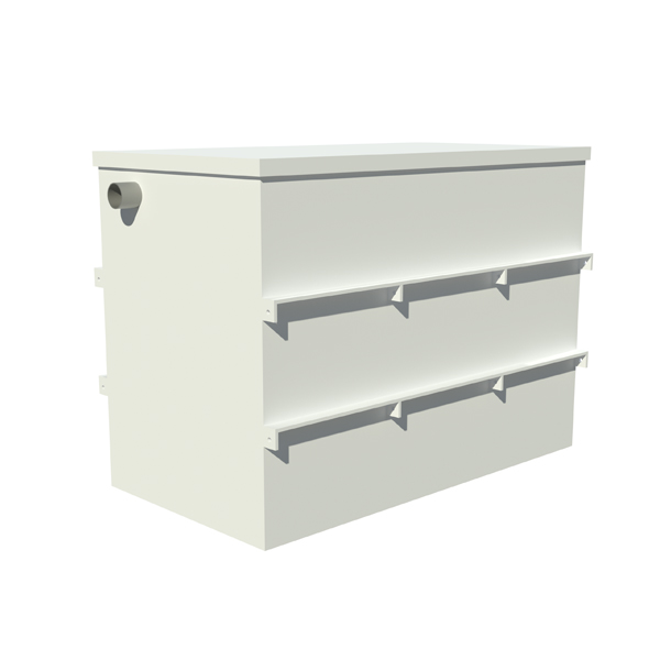Поступление сточных вод в жироуловитель «ТОППОЛИУМ» ОТП-5 осуществляется самотеком. Внутри оборудования из воды выделяются взвешенные примеси, которые опускаются на дно, а также масла и жиры, которые оказываются на поверхности. Вертикальные перегородки замедляют ток воды и увеличивают время на ее очищение. Частицы масла и жира остаются плотной массой на стенках камер сепаратора, по мере накопления их удаляют вручную через технологическое отверстие. Благодаря крышке «ТОППОЛИУМ» ОТП-5, запах от сточных вод не распространяется за пределами его корпуса. Сепаратор не нужно подключать к источнику энергии, а для поддержания его работоспособности следует просто регулярно удалять накопившийся жир. Оборудование может работать самостоятельно или подключаться к автономной системе наружной канализации для выполнения одного из этапов отведения и очистки сточных вод.